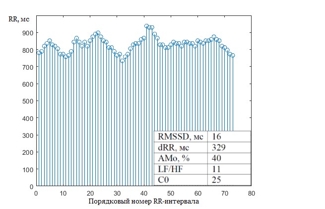 1. Участок ритмограммы здорового пациента и параметры вариабельности сердечного ритма