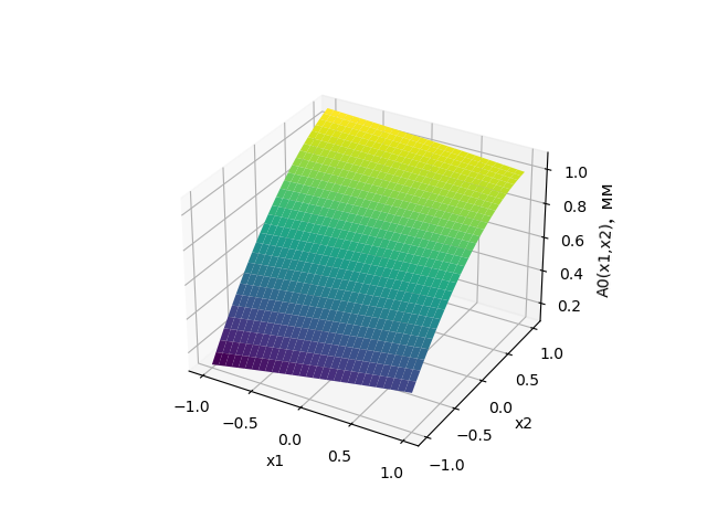 1. Зависимость высоты валика наплавки от нормированных значений мощности лазера и подачи порошка