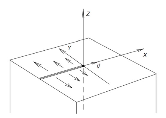 - Проведено моделирование распределения температуры в материальном полупространстве, на границе которого действует движущийся источник тепла, путем решения уравнения нестационарной теплопроводности в декартовых координатах.