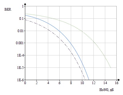 1. Рис. 1. Зависимость битовой ошибки (bit error rate ¬– BER) от отношения энергии на бит к плотности шума.