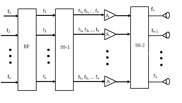 1. Рис. 3. Структурная схема сумматора 2-го типа: ПФ – полосовой фильтр; РС-1 – 1-й разделитель сигналов; РС-2 – 2-й разделитель сигналов; У – усилитель мощности сигнала.