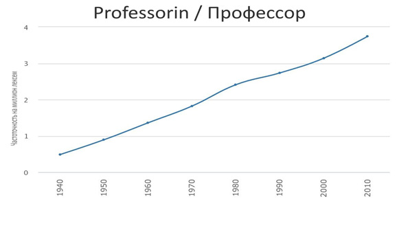 1. Рис. 1. Динамика использования термина Professorin – профессор (женщина) в корпусе немецкого языка [14].