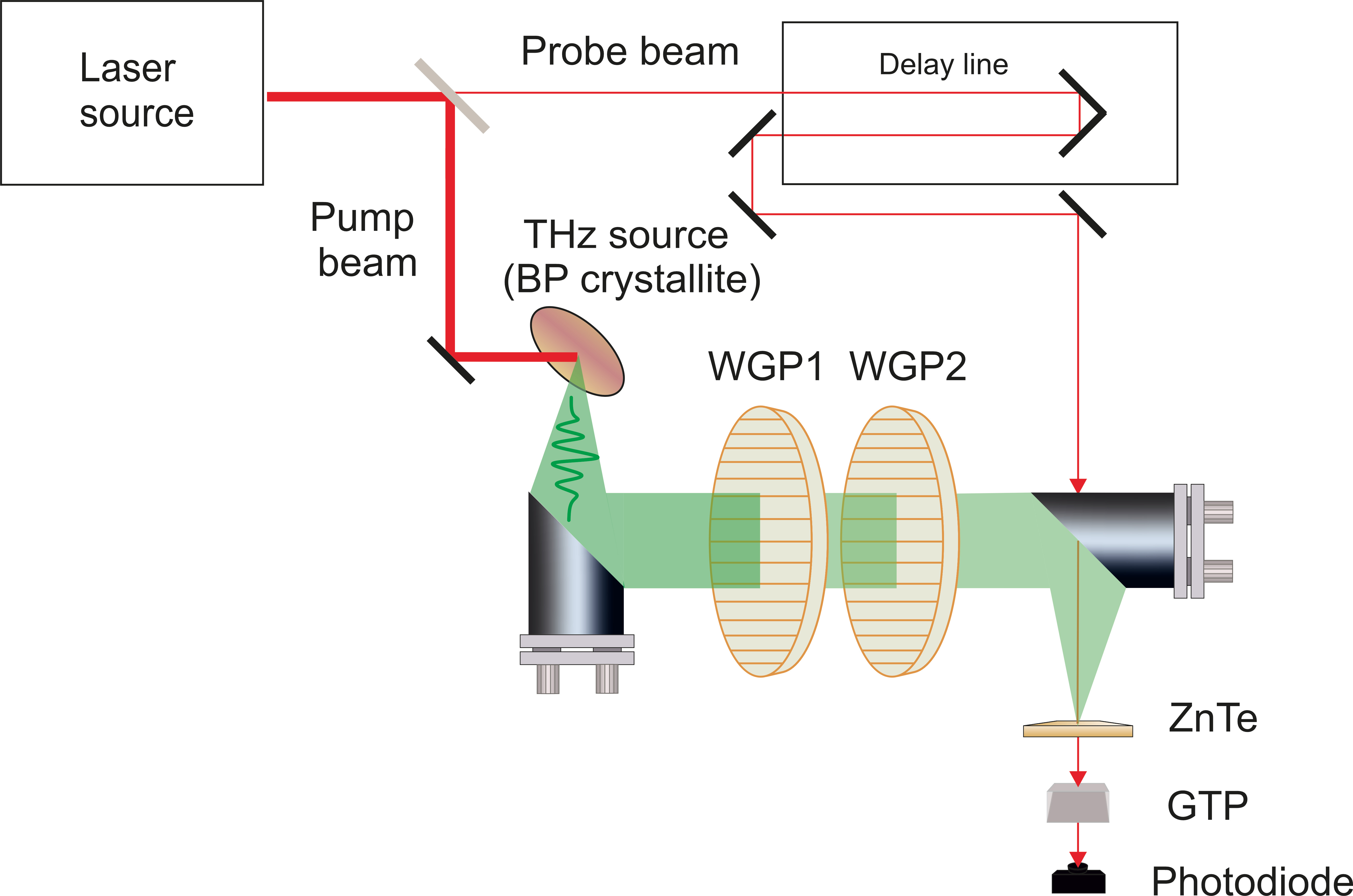 1. Схема экспериментальной установки THz-TDS. GTP – поляризатор Глана – Тейлора | |