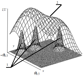 1. Модель принимаемого сигнала и исходные объекты: 1 – исходные объекты; 2 – принимаемый сигнал