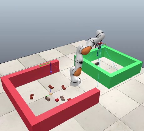 - Представлен комплексный алгоритм анализа сцены и реализация непрерывного генетического алгоритма для решения задачи поиска целевого положения захватного устройства робота избыточной кинематики Kuka LBR iiwa 7 R800.