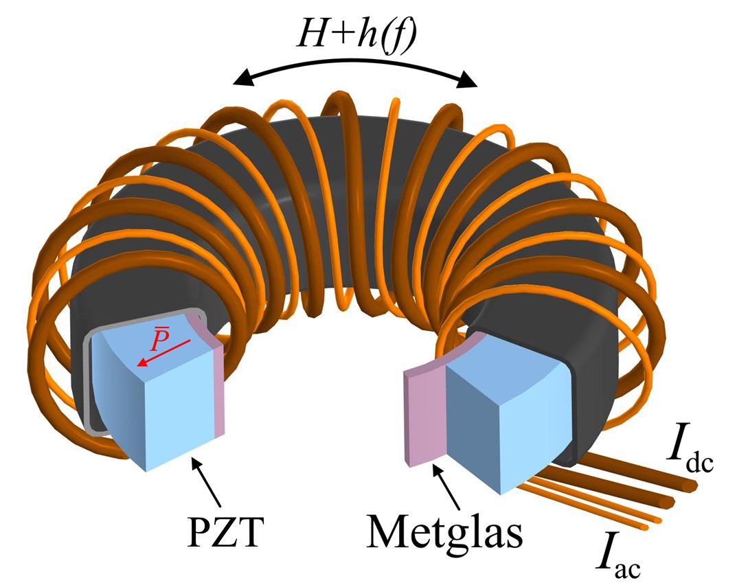 Методы. МЭ-эффект исследован методом низкочастотной модуляции магнитного поля. Возбуждающее переменное и постоянное магнитные поля смещения были созданы при помощи тороидальной катушки, намотанной на гетероструктуру, для циркулярного намагничивания ферромагнитного слоя.