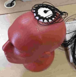 1. Муляж головы с установленным комплексом электродов, реализующим лапласиановский монтаж