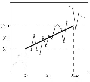 1. Схема построения монотонного сегмента по отрезку временного ряда согласно алгоритму ACD