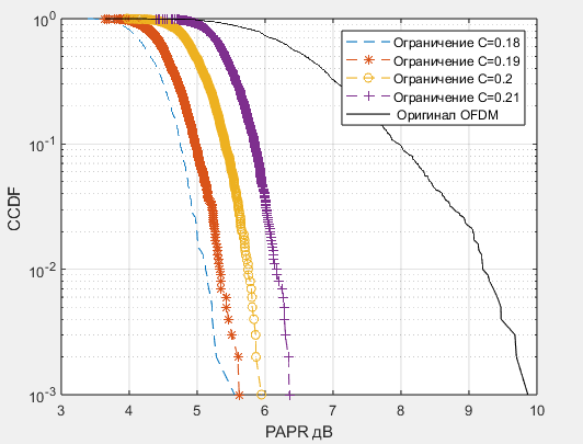 1. Результаты снижения пик-фактора сигнала OFDM методом ограничения с дополнительным сигналом | |